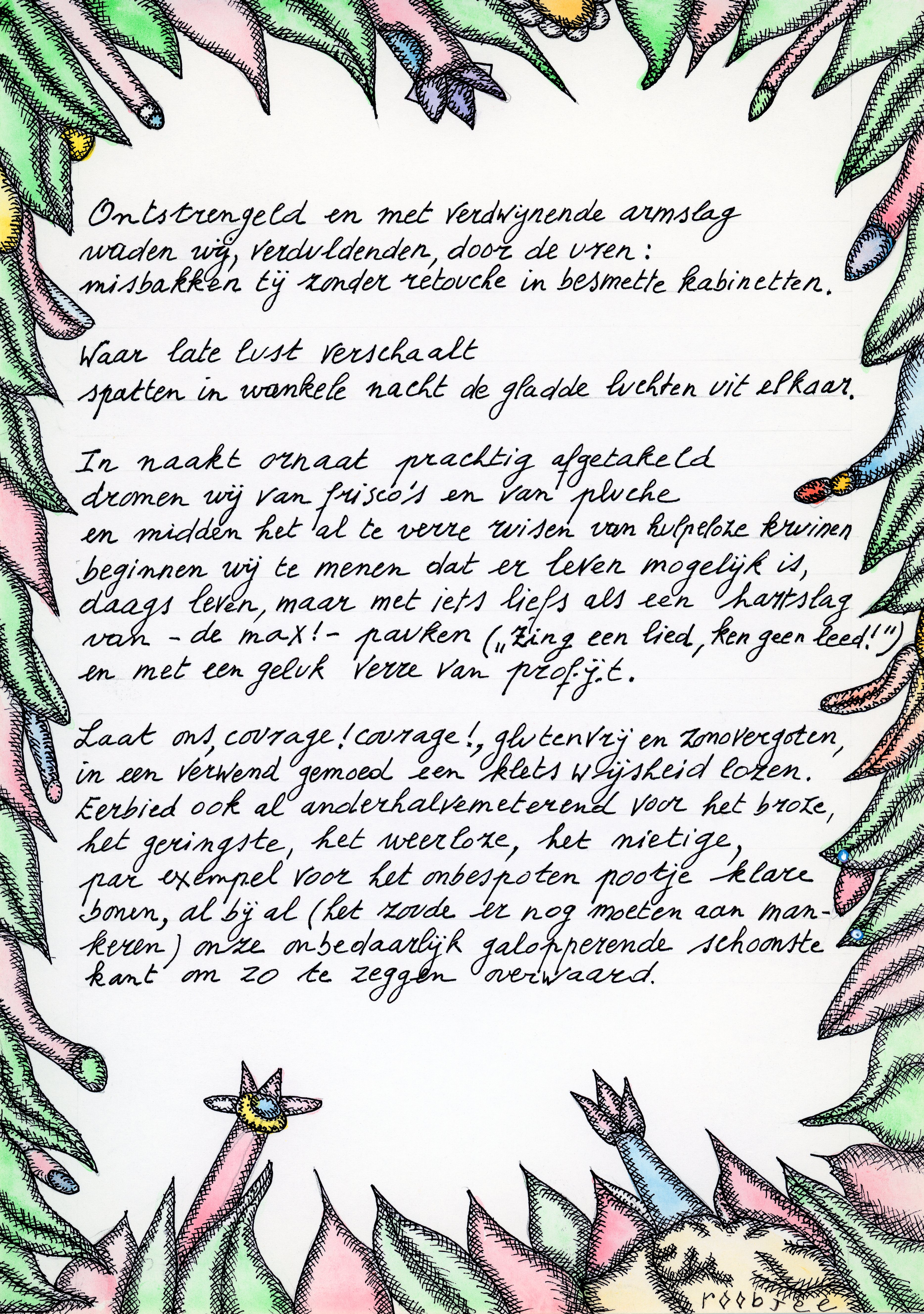 Pjeroo Roobjee (Gent, 1945) volgde lessen schilderkunst, tekenkunst en graveren aan de Koninklijke Academie voor Schone Kunsten van zijn geboortestad en aan de voorbereidende afdeling van de Rijksacademie te Amsterdam. Heden is hij werkzaam als schilder, tekenaar, graficus, acteur, causeur, auteur, theatermaker, entertainer en zanger. Zijn overwegend monumentale doeken bereisden de vijf werelddelen en waren te zien op belangrijke kunstmanifestaties zoals de Biënnales van Sâo Paulo en Venetië. Zowel zijn plastische als zijn literaire bezigheden werden meermaals bekroond.